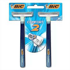 2 Lâminas Confort Gillette fita lubrificante e cabo emborrachado com cabeça móvel.